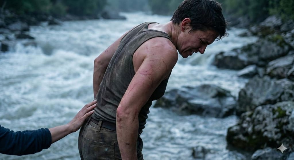 over the rushing indifference of the river nearby.
