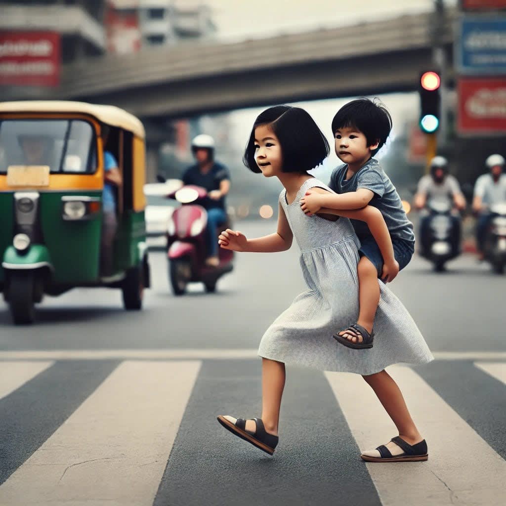 Meera was an enthusiastic and brave girl, always eager to explore. Their new home was far from any shops, and if they needed anything, they had to cross a heavy-traffic road to reach the market. Meera’s parents would go once a week to buy groceries, vegetables, or other essentials, strictly instructing Meera never to cross the road alone.