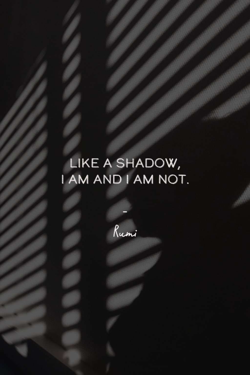 As a shadow, I’m just a fixture tainting on the reflection of light, of that which exists, somewhere! But where? Not in your loving view. Where I want to be, belonging to you. My heart aches. Not where I desire to be, in whole. Pieces of me, that’s what you see. I worry, “Is this how you see me?” and I fear, it’s all I’ll ever be.