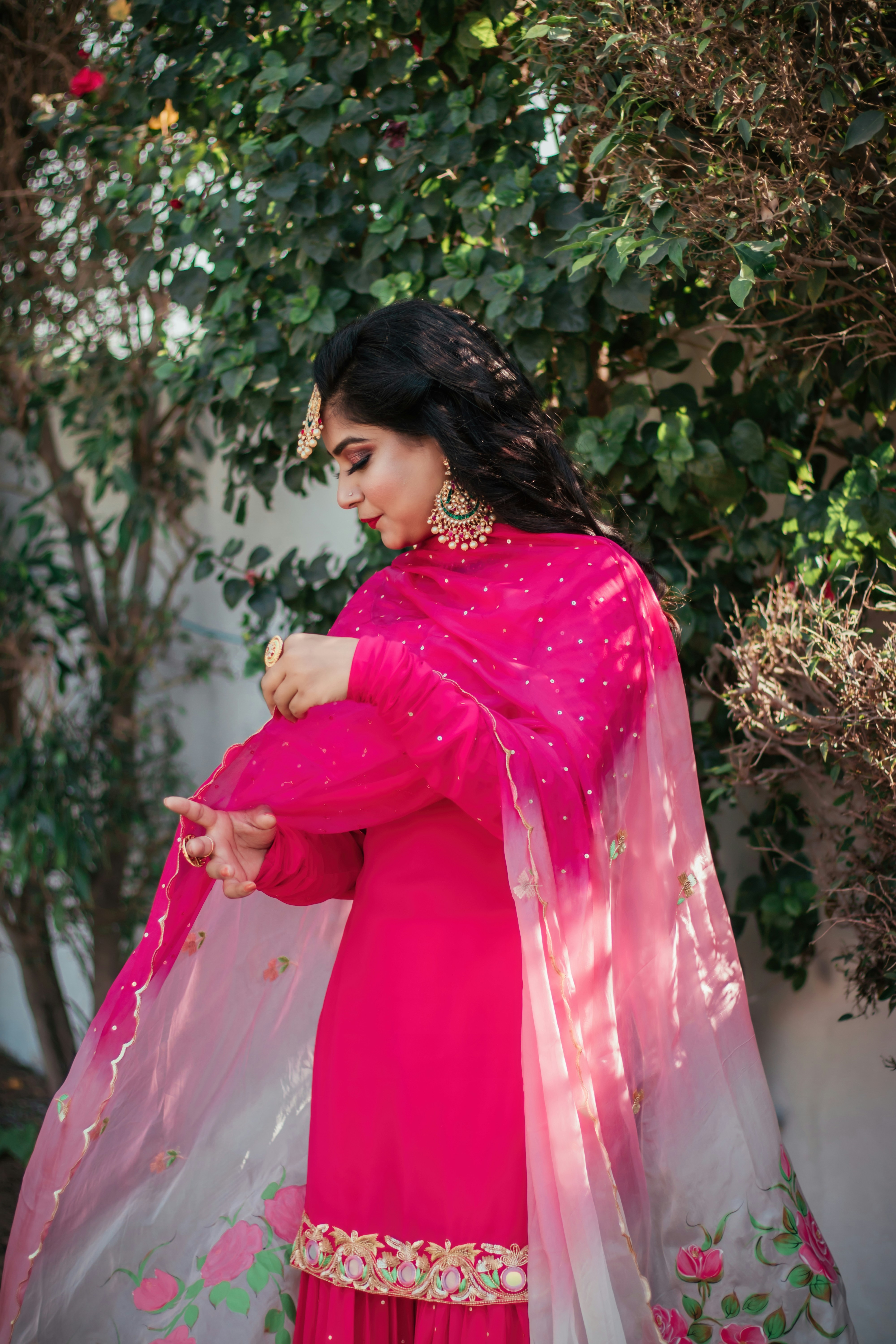 One more element of this dress is the Dupatta, which is draped across the body and inserted into the skirt.