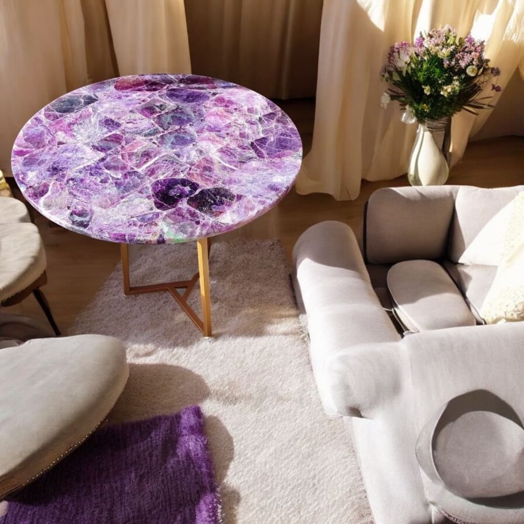 An amethyst table is more than just furniture—it's a masterpiece. These tables are crafted using slabs of amethyst, a stunning purple quartz crystal known for its vibrant color and natural beauty. The unique interplay of shades and patterns makes every table a one-of-a-kind creation, blending nature and functionality seamlessly.