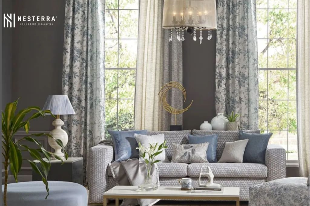 Sarah wanted her bedroom to be her sanctuary. She selected a delicate, floral-print fabric in muted tones for her bedding and complemented this with light, airy linen curtains that allowed soft light to filter into the room in the mornings. Nesterra’s collection had the perfect options for this—a testament to the range’s versatility.