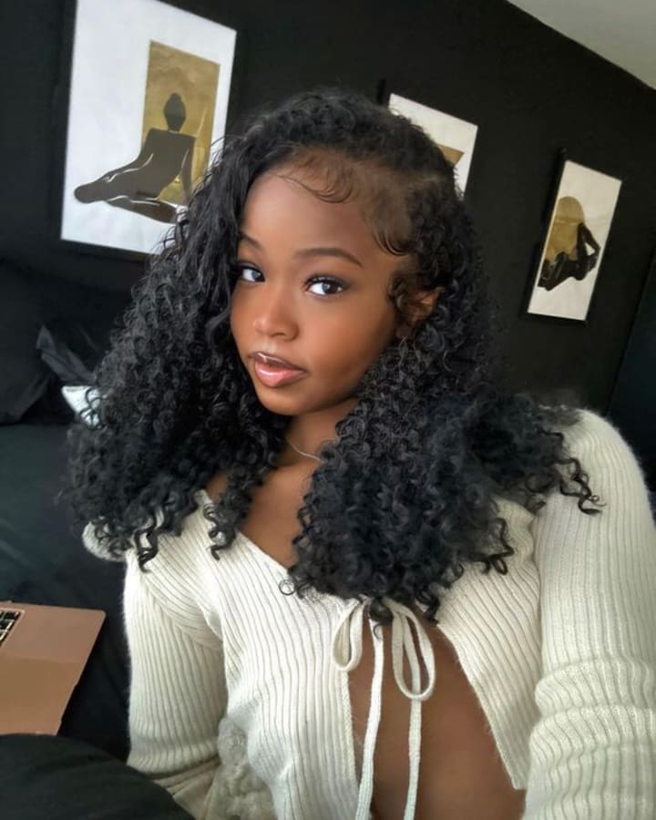 If you want to keep things simple and lovely, wear your curls as is. Allow the wig to naturally frame your face, with your hair merging in at the part. This outfit is easily stylish and suitable for both casual and formal occasions.