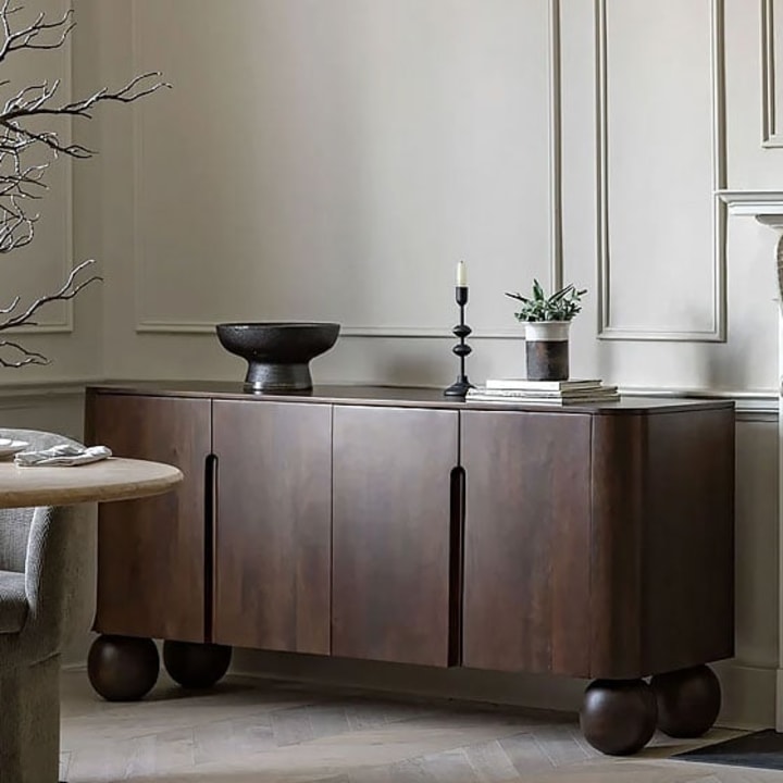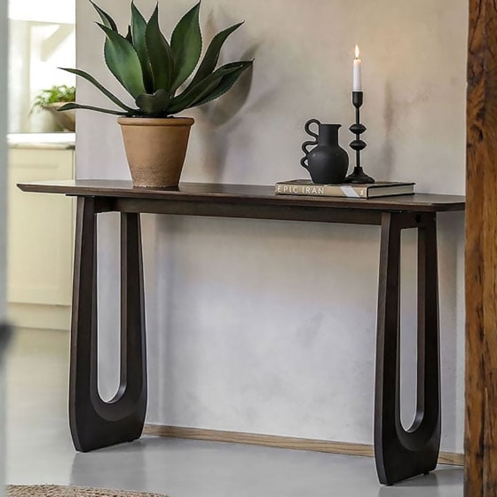 Another item that can display soft edges is a mango wood console table; these impressive furniture items can offer additional surface space and storage. They can achieve significant impact when located behind a sofa or on a flat wall, providing an excellent opportunity to accessorise. We love to see two lampshades on either side of the console table, creating symmetry alongside a low central accessory like a bowl or tray, creating a classy look to your accessories. Whether behind a sofa or on a flat wall, they offer interest and detail to your room. Mango wood console tables can provide additional storage in the form of open shelving and drawers, allowing you to shut away your items and assist you in keeping your living room clutter-free. There are modern designs and traditional designs to compliment your interior and preference. Traditional mango wood console tables can display carved patterns and designs, creating an intricate and decorative finish for the console table. A modern design sideboard might display detail more simply with vertical ribbed details and metal details in gold or black, adding an elegant touch. Mango wood console tables are renowned for their slim format, which makes them easy to locate in more compact spaces.