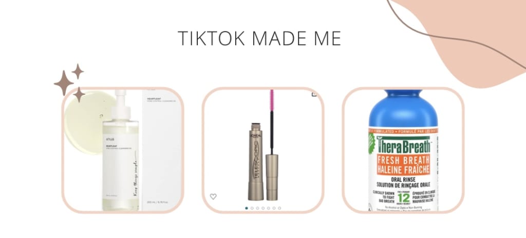 The lineup includes the Aquaphor Healing Ointment, TheraBreath Fresh Breath Oral Rinse, ANUA Heartleaf 77% Soothing Cleanser, Maybelline Sky High Mascara and L'Oreal Paris Telescopic Mascara. The buzz and positive reviews on TikTok have tempted me to add these to my beauty regime. It's fascinating how social media platforms like TikTok can influence our buying decisions and introduce us to new products.