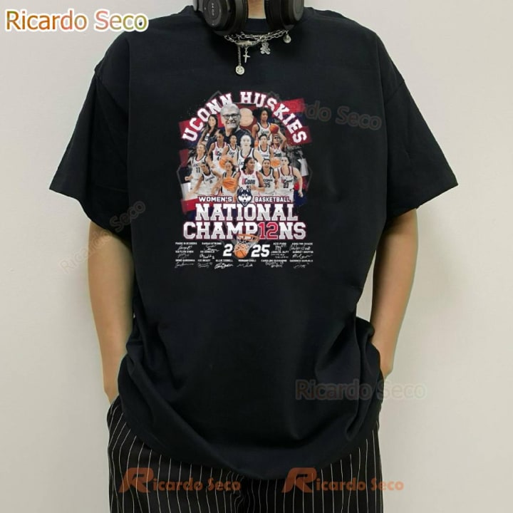 The **UConn Huskies 2025 NCAA Women’s Basketball Champions 12x Signatures T-Shirt** is an exciting celebration of the University of Connecticut's remarkable success in women’s basketball. As fans commemorate yet another championship title, this t-shirt serves as both a stylish piece of apparel and a tribute to the incredible athletes who have contributed to the team's legacy. In this review, we’ll explore the design, comfort, fabric quality, sustainability features, and overall value of this standout item.
