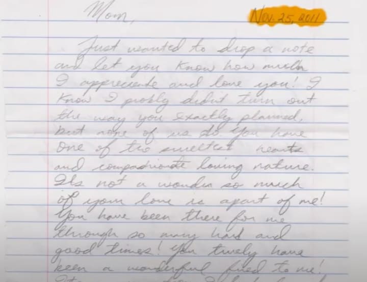 A year before his untimely death, Christopher wrote a letter to his mother describing the troubling symptoms he had been experiencing. His condition had grown so severe that he was unable to join her for Thanksgiving as he had planned.