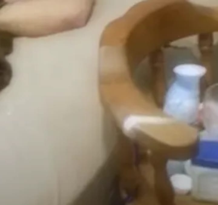 Crime scene photographs also depicted the chair in question, positioned beside Christopher’s bed. Distinct restraint marks were visible on its arms, and a strap still dangled from the frame, suggesting it had been used to confine him.