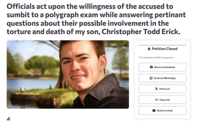 Undeterred, Kimberly took her fight online, where her story drew overwhelming support. An accompanying petition garnered over 600 signatures, calling for Christopher’s father and grandmother to undergo polygraph testing.