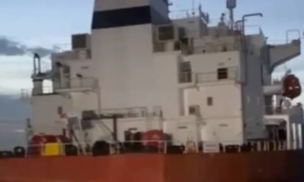 Tanker Linked to Russia Trade Hit by Explosions Off West Africa’. AI-Generated.