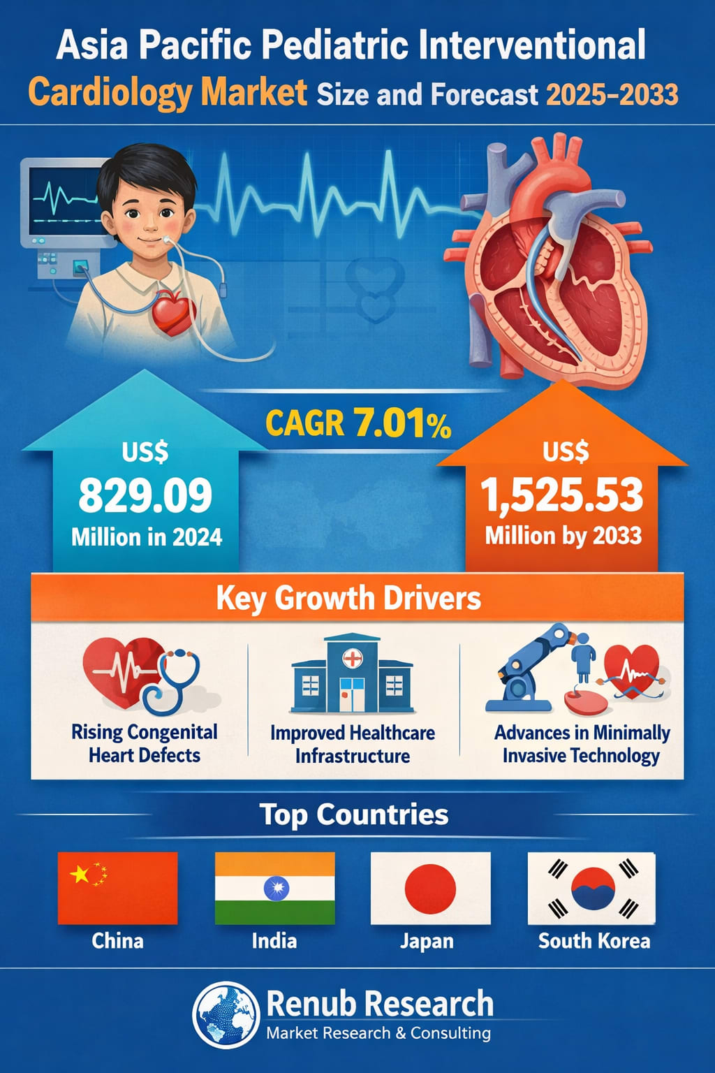 The Asia Pacific Pediatric Interventional Cardiology Market is entering a period of sustained and meaningful growth as healthcare systems across the region place increasing emphasis on advanced, child-focused cardiac care. According to Renub Research, the market is expected to reach US$ 1,525.53 million by 2033, rising from US$ 829.09 million in 2024, at a compound annual growth rate (CAGR) of 7.01% from 2025 to 2033.