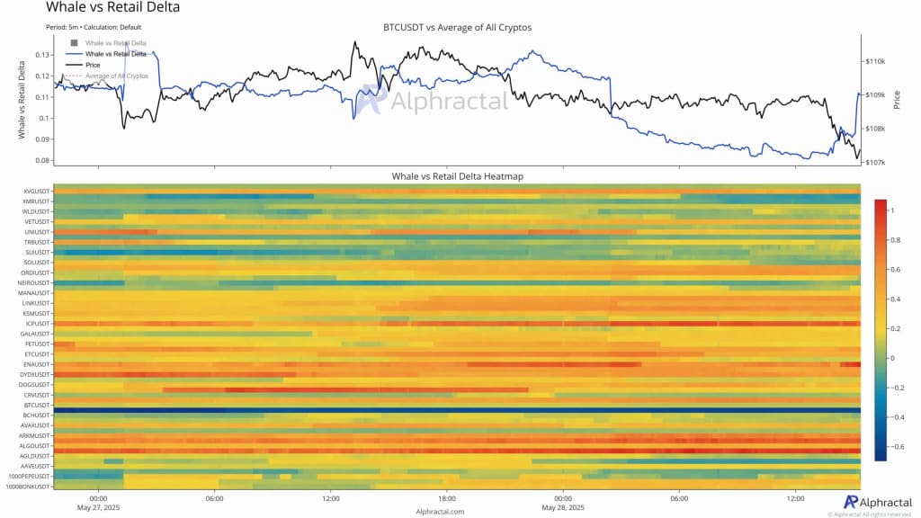 In stark contrast, retail investors remain hesitant. Despite BTC hovering around $107,000, on-chain activity and exchange inflows from smaller wallets suggest that everyday investors are still largely observing from the sidelines.