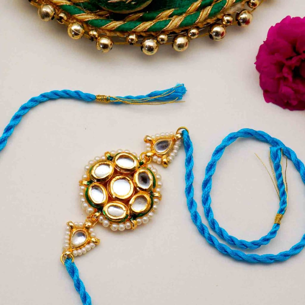 Celebrate Raksha Bandhan with NRI rakhi in the USA, Canada, the UK, and all around the world. Because of its jewel-encrusted embellishments, it has a traditional yet fashionable appearance.