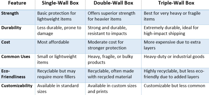 Comparison: Single-Wall vs. Double -Wall vs. Triple-Wall Cardboard Boxes