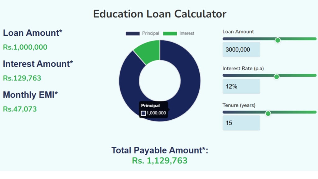 An Education loan interest rate calculator is often built into the EMI tool. It lets you: