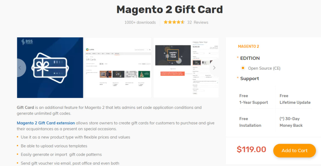 Magento 2 Gift Card by BSS Commerce: Offers advanced features and a user-friendly interface.: https://bsscommerce.com/magento-2-gift-card-extension.html