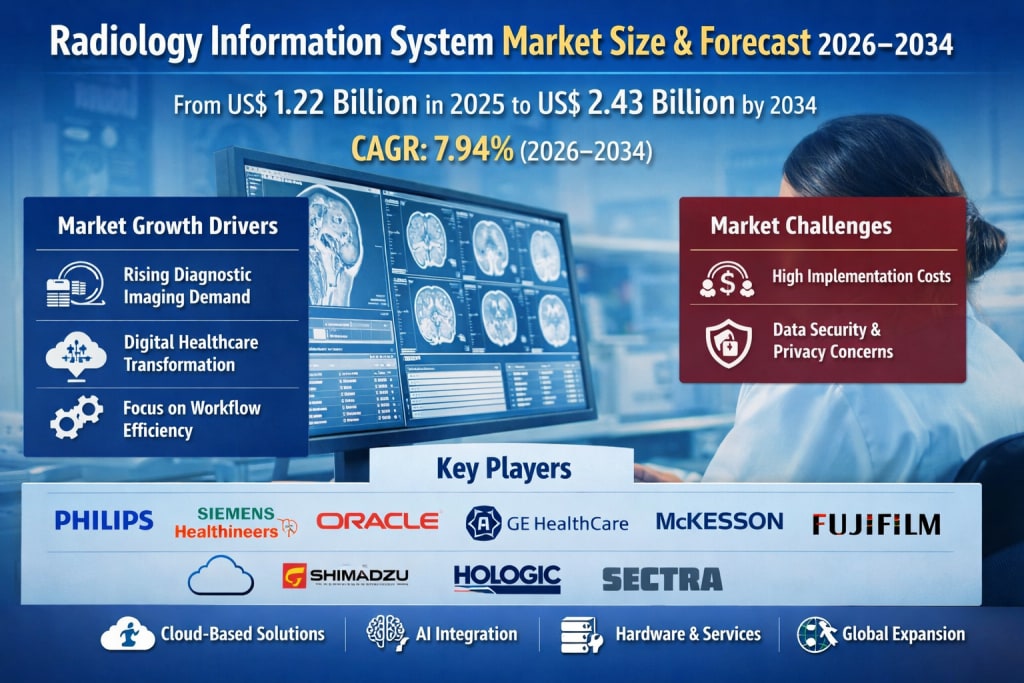 According to Renub Research, the Radiology Information System Market is expected to grow from US$ 1.22 Billion in 2025 to US$ 2.43 Billion by 2034, expanding at a compound annual growth rate (CAGR) of 7.94% from 2026 to 2034. This steady growth is fueled by the increasing number of diagnostic imaging procedures, expanding healthcare IT infrastructure, and rising adoption of cloud-based technologies and artificial intelligence.