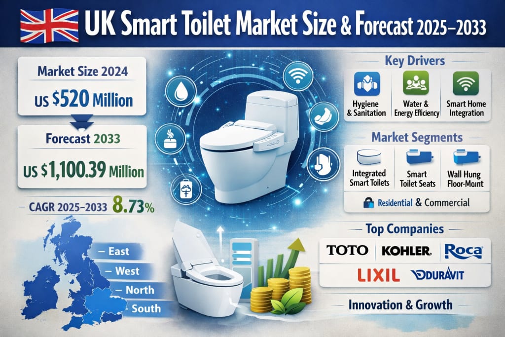 The United Kingdom smart toilet market is entering a phase of steady and transformative growth, reflecting broader changes in how consumers think about hygiene, comfort, and sustainable living. According to Renub Research, the UK smart toilet market is expected to reach US$ 1,100.39 million by 2033, rising from US$ 520 million in 2024. This expansion represents a compound annual growth rate (CAGR) of 8.73% from 2025 to 2033, highlighting how quickly advanced bathroom technologies are moving from luxury niches into more mainstream adoption.