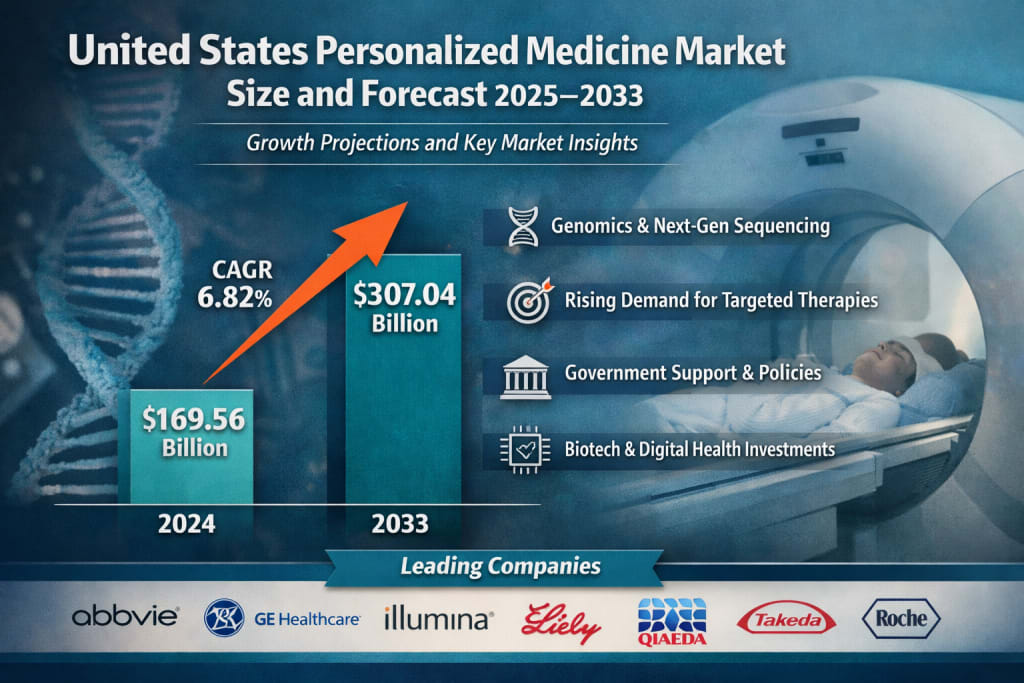 According to Renub Research, the United States Personalized Medicine Market is expected to reach US$ 307.04 billion by 2033, up from US$ 169.56 billion in 2024, growing at a compound annual growth rate (CAGR) of 6.82% from 2025 to 2033. This impressive expansion reflects not only technological progress but also changing patient expectations, evolving regulatory frameworks, and increasing investments in biotechnology and digital health solutions.