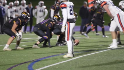 No time to even ponder their fate, Harrison was soon giving chase to Palazzolo down the near sideline, and a 30 yard gain put Somers on the 35. Enough fancy stuff, Somers kept it simple from there. One Sullivan keeper and four runs by Kelly had the Tuskers in the lead for good at 26-21.