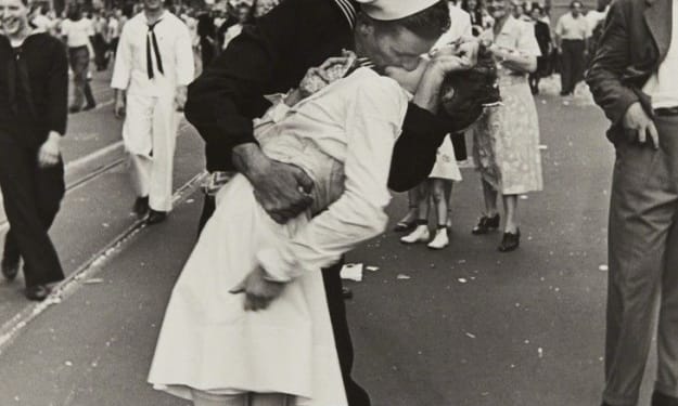 It’s an enchanting photograph. The black and white image of “The Kissing Sailor” romanticizes Americans’ joy and relief at the announcement that World War II was coming to an end. When I first saw it, I was convinced that the sailor and the nurse were reunited lovers who were expressing their happiness over the long awaited news. Their poignant uniforms evoked images of two people committed to service in a time of national need. They, more than most, deserved a moment of bliss after sacrificing so much.