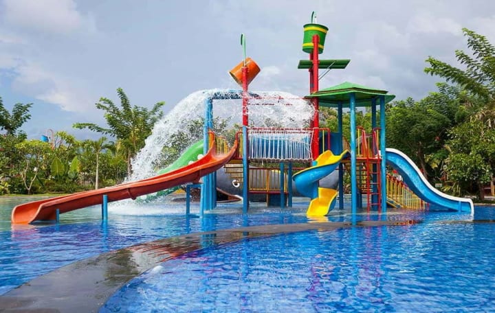 It has an activity pool, three landing pools, and a wave pool, a group of waterslides of various shapes and sizes, making for a fun ride for water lovers. Other popular attractions are the lazy river ride, splash pool, aqua dance, red dragon slide, run away raft slide, slides like white multi-lane, typhoon tunnel, white slide, and pendulum slide.