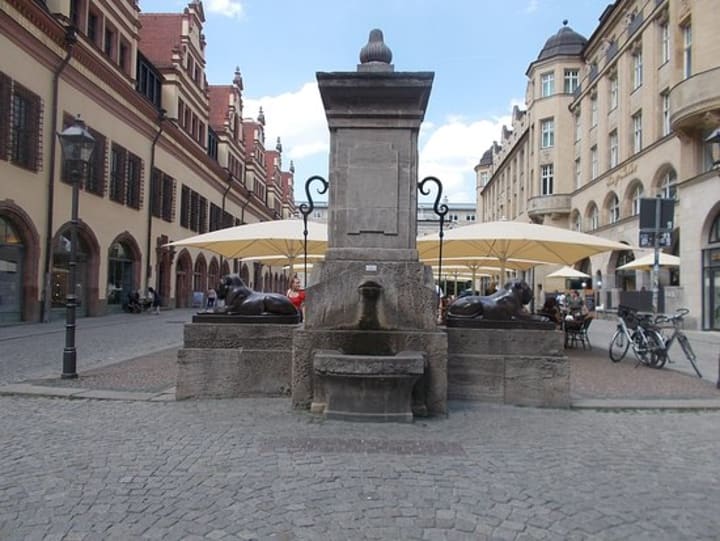 At the back of the Old Town Hall is the Naschmarkt where you can find the Old Stock Exchange with its grand staircase, a statue of the student Goethe, and the Lowenbrunnen or Lion Fountain.