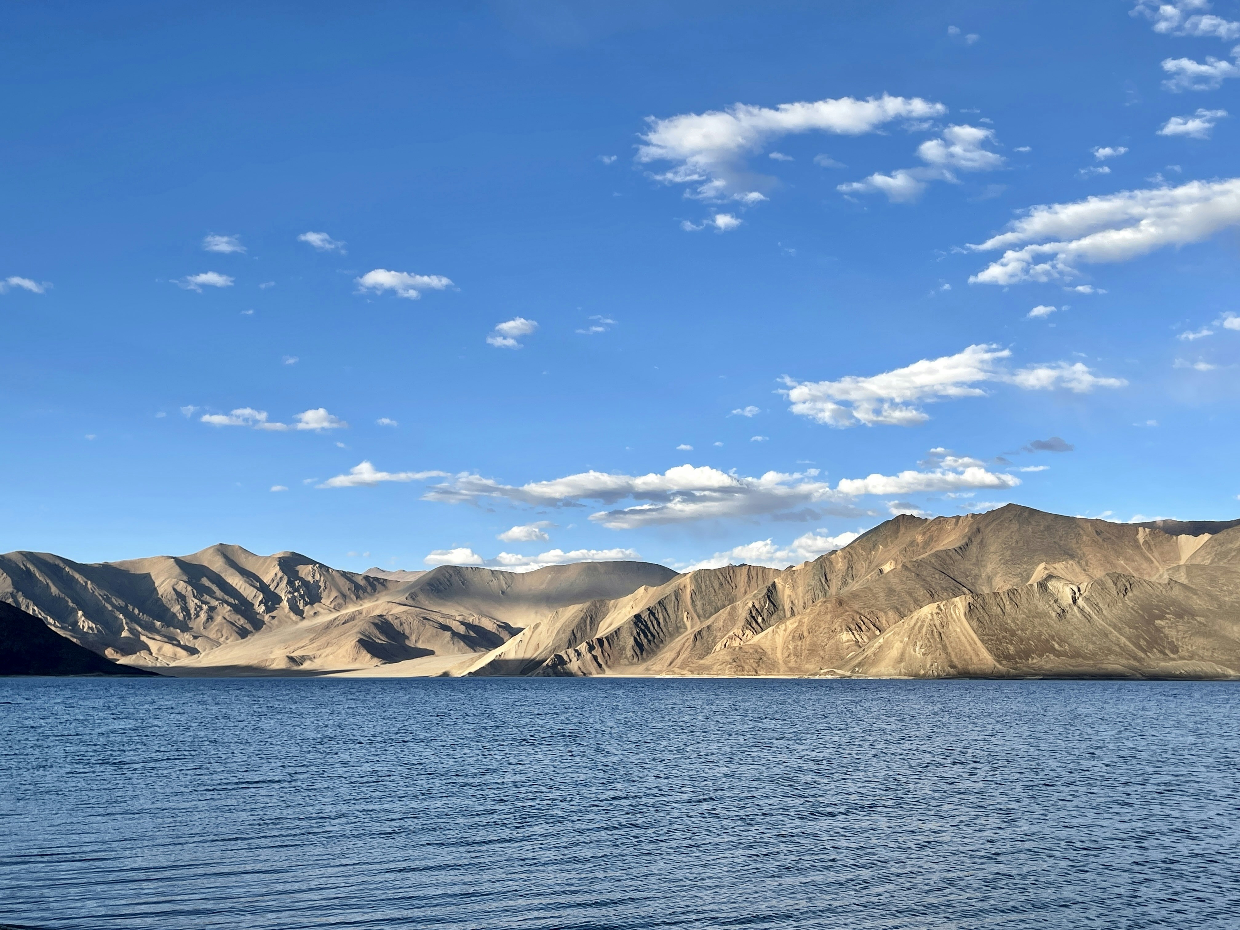 Our first big stop was at Pangong Lake. The lake’s bright blue water seemed to go on forever, with tall mountains all around it. We parked our bikes and sat by the lake, taking in the beautiful view. It felt like we were on top of the world!