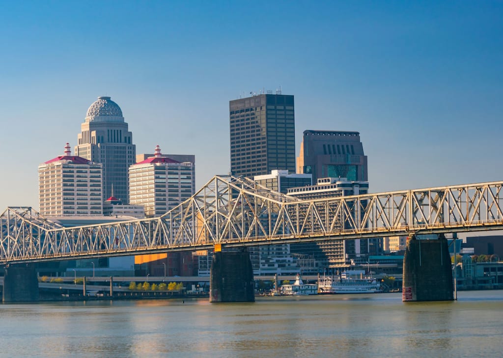 Louisville is Kentucky’s largest city. It sits on the Ohio River along the border with Indiana.