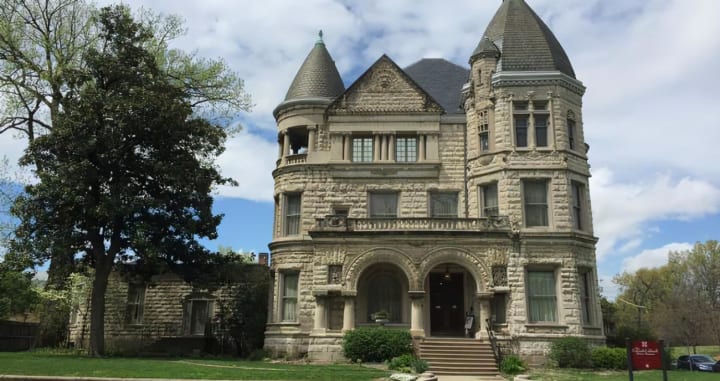 The Conrad-Caldwell House Museum is an important house in the St. James-Belgravia Historic District in Old Louisville. It was built in 1893 and nicknamed “Conrad’s Castle”. It was built in the Richardsonian-Romanesque style. The exterior features coned, hexagonal, and pyramid-shaped towers with decorations like gargoyles, carved animals, and others. Tours are offered and the house can be rented for special occasions.