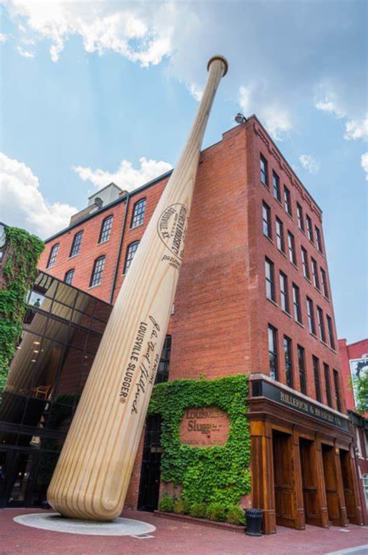 Louisville Slugger Museum & Factory arriving at the museum the first thing you’ll see is the 120-foot replica of Babe Ruth’s Louisville Slugger at the entrance. You can see the factory where the Louisville Slugger is made and see how it is made for professional baseball players. There is memorabilia and exhibits about some of the most legendary players who have used it. Among the highlights are the bat used to hit Hank Aaron’s 700th home run, Joe DiMaggio’s bat from his 56-game winning streak, and the bat used by Babe Ruth for 21 of his 1927 home runs and much more. The museum has batting cages, a pitching simulator, and a 17-ton limestone baseball glove.