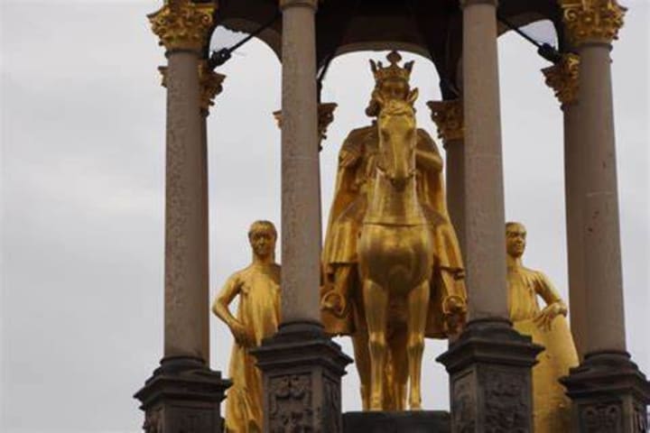 In the heart of the city at the Old Market visitors will find the Magdeburg Horseman, the bronze replica of the first free-standing equestrian statue found north of the Alps. The statue depicts Emperor Otto the First flanked by two allegoric sculptures depicting maidservants. One maid holds a shield with the Imperial Eagle, the other a lance with a banner. Both are symbols of imperial power. The original statue was moved to the Magdeburg Cultural History Museum in 1967.