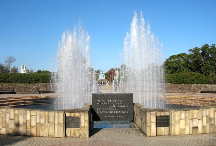 The Peace Park is located north of the hypocenter of the attack. The highlight here is the 10-ton bronze Nagasaki Peace Statue which was designed in 1955 by Kitamura Seibo.