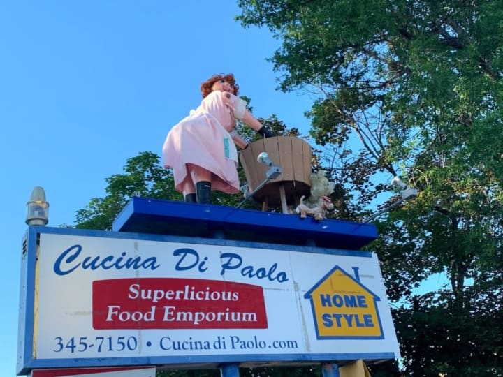 When in Boise, Idaho people were amazed when passing the Maytag Laundry Building they saw a large statue of a washerwoman. Years passed and the building became a restaurant called Cucina di Paolo. However, the washerwoman remained and today she can be seen wearing different outfits depending on the weather or the holiday. You can take a break from driving, have a meal, and get a good look at the washerwoman.