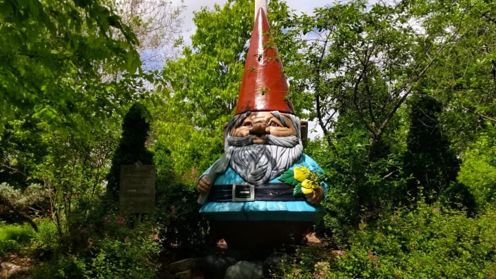 Ames, Iowa will greet you with Elwood a 15-foot-tall gnome. He is located in Reiman Gardens on the Iowa State University campus. He holds the record for being the tallest concrete garden gnome.