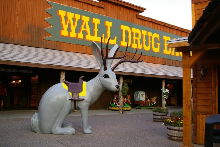 Did you want just a plain drugstore? You have got to see Wall Drug in Wall, South Dakota in the Great Black Hills. In 1931 Ted Hustead opened a small drug store and offered tourists free ice water. He advertised Wall Drug on billboards all across the country. In the 1970s his son Bill took over and expanded the store. All around the property, you can see things like a mini-Mount Rushmore, a giant T-Rex, and other interesting items.