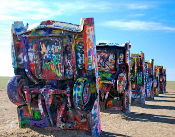You’ll find the fantastic Cadillac Ranch in Amarillo, Texas. Helium magnate Stanley Marsh 3 got together with the San Francisco, California art collective The Ant Farm and built this incredible public art installation. There are ten Cadillacs half-buried in a cow pasture their trunks up in the air. The car bodies are decorated with colorful graffiti. Visitors are encouraged to leave some of their own marks on the sculptures.