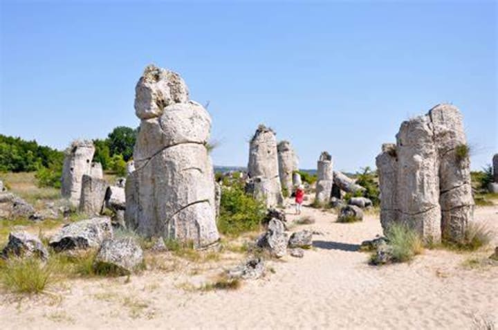 The Stone Forest a short distance from the battlefields is an unusual natural phenomenon. It is located in the only desert in Bulgaria. There is a field of stone columns that are hollow and were formed by a process known as methane oxidation caused by tiny organisms.