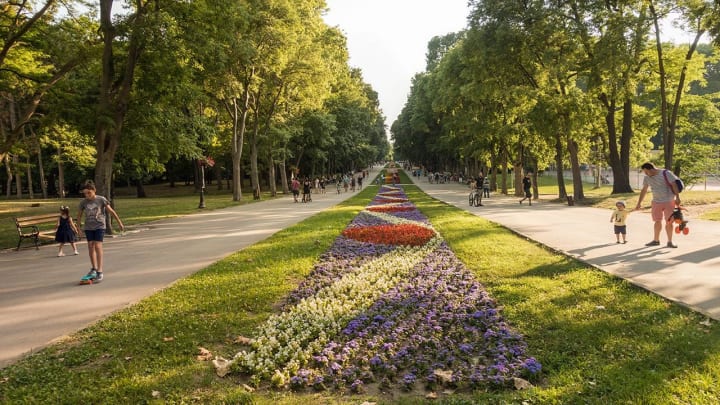 It is a wonderful place for strolling, bike riding, or participating in outdoor sports. There is also a zoo and terrarium.