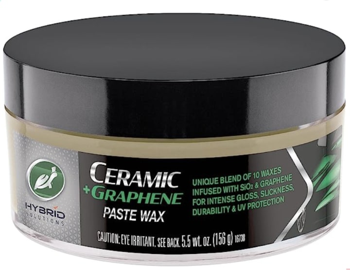 The car wax in question contains Ceramic and patent-pending Graphene technologies, ensuring incredible slickness, shine, and long-lasting durability. It features a low-dusting formula that is easy to apply and does not leave any powder residue upon removal. This product creates a protective barrier that defends against environmental and chemical contaminants, maintaining gloss, clarity, and water resistance for months. It is versatile and can be used on various surfaces like wheel surfaces, headlights, clear plastics, and exterior metals such as chrome and aluminum. Furthermore, it can be applied in direct sunlight and on warm or cool paint finishes. However, it is important to note that applicators and towels are not included with the car wax.