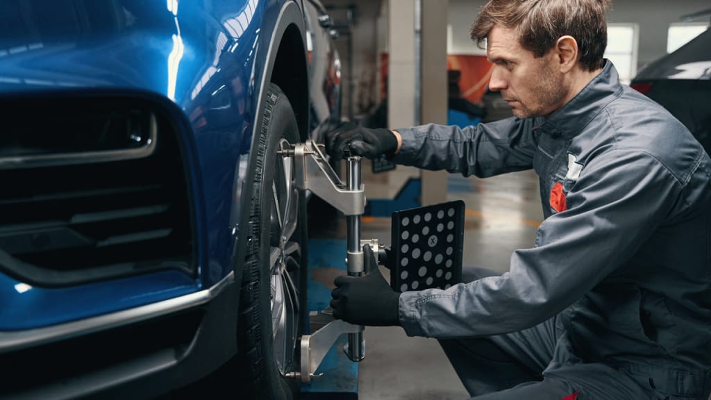 Verifying the alignment: The mechanic will monitor the existing alignment of the wheels by using specialized tools.