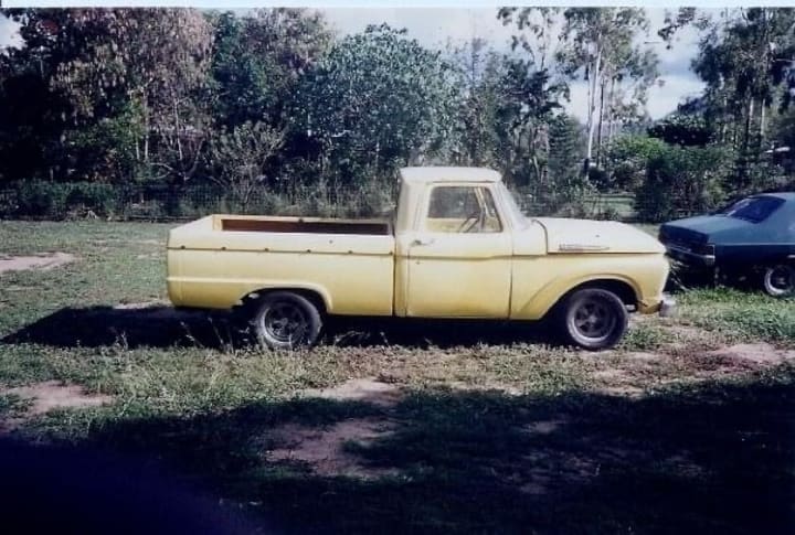 I didn’t need any more convincing after that, an F truck would be my dream truck. When I was 19, I had saved up enough money and bought a 1962 model. Canary yellow with a 351 Cleveland engine. It had the aerodynamics of a brick wall, I got about a mile to the gallon, there was no air-conditioning which would have been nice in such a hot climate, and the fuel tank (still located within the cabin behind the seat) leaked which often meant the cabin was filled with gas fumes. But I loved it, I felt like I had found something that Dad and I could connect on.