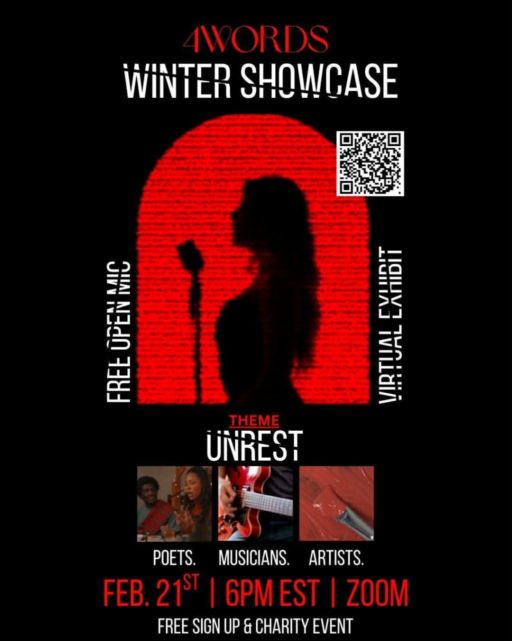 4WORDS is holding our first ever virtual open mic and art exhibit.