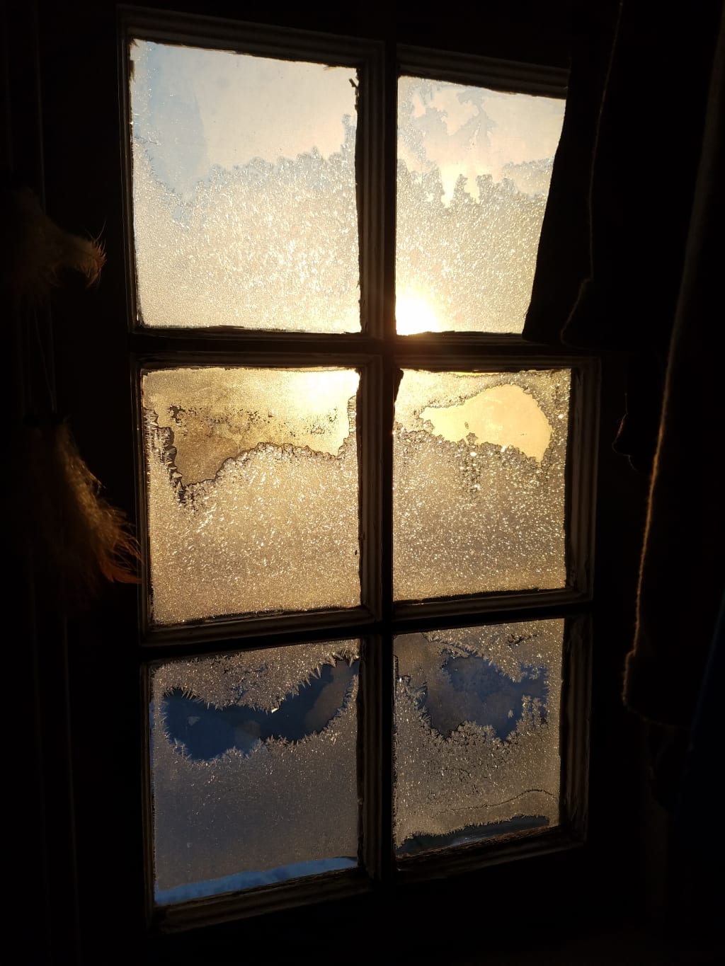 The sunlight peaking through dirty windows