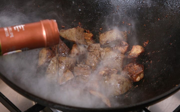 As we watched the mixture in the pan thicken and develop flavours, we could already imagine what the end result would be. The flavours were becoming more intense and we couldn't wait to try it. The recipe said to add wine vinegar to balance the fattiness of the nuts and offal. We followed the instructions carefully, then decided to add some pomegranate juice to brighten the flavour.