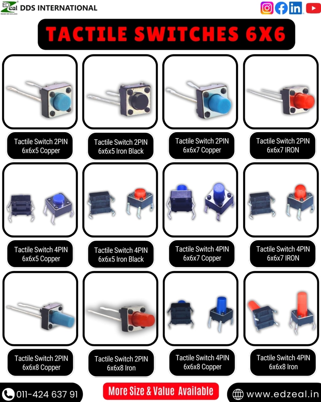 As a trusted supplier of the best tactile switches in Wazirpur and all across Delhi, we at DDS International - Edzeal offer:
