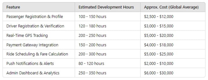 4. Cost of Developing a Taxi App Like Uber