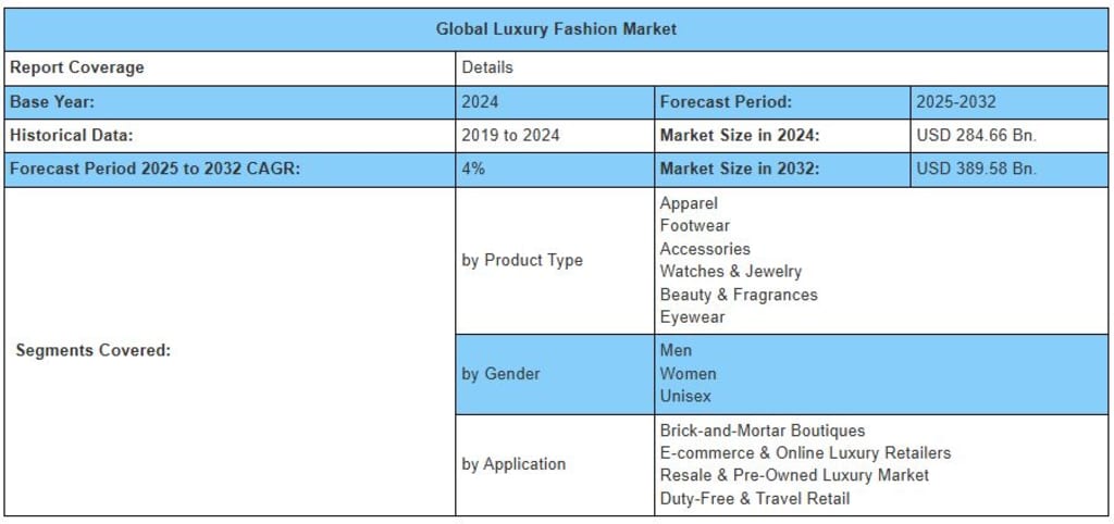 Luxury Fashion Market Anticipated to Reach USD 389.58 Bn by 2032, with a CAGR of 4% from 2025 to 2032