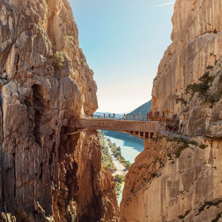 The views over the El Chorro Gorge are ridiculous. Imagine turquoise water, jagged limestone cliffs, and vultures circling overhead. It's only a few kilometres long, but you’ll want to stop every five minutes for photos.