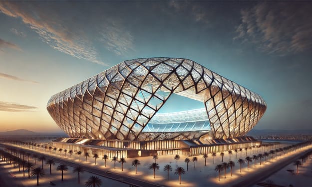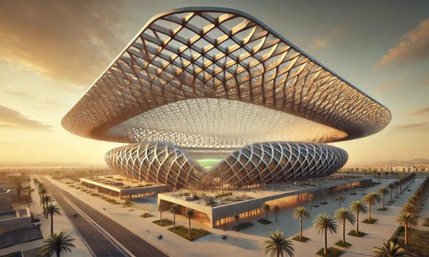 Saudi Arabia’s Stadium Revolution: Space Frame Marvels for the FIFA World Cup and 2027 AFC Asian Cup. AI-Generated.